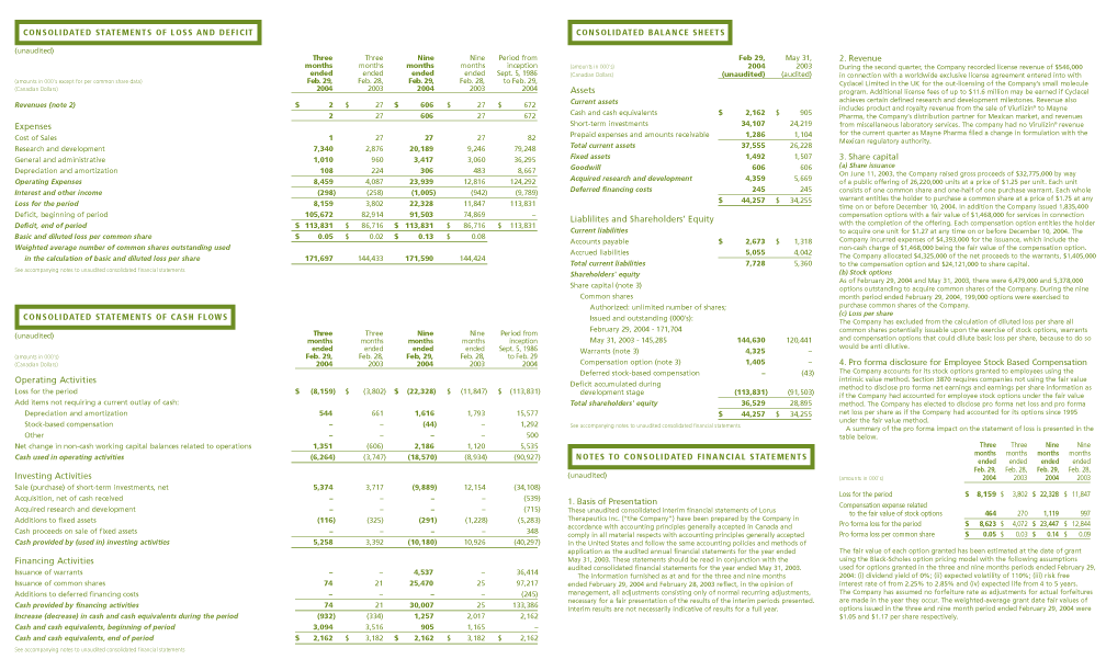 For the financial year ended May 31, 2004