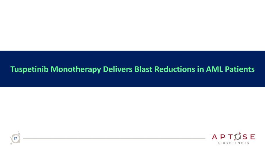 Tuspetinib Monotherapy Delivers Blast Reductions in AML Patients 17